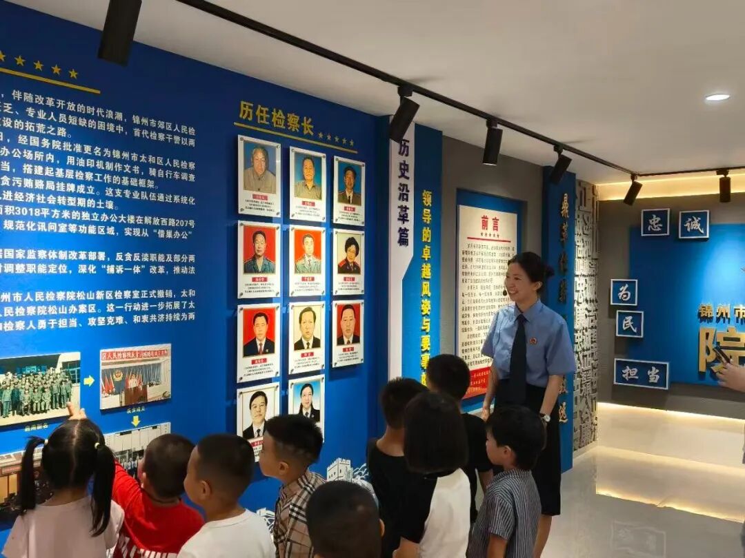 看过了讯问室,小朋友们又来到院史馆。馆里摆放着富有年代感的档案和文物。这里记录着太和区检察院的机构变迁,也承载着往日的辉煌。小朋友们看着如自己家里奖状一样的荣誉证书,都用喃喃细语表示,自己未来也要成为一名检察官。