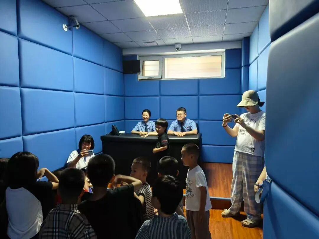 接着,小朋友们来到了一楼的讯问室。在这里,工作人员向大家展示了检察机关的案件办理流程,虽然这些专业的工作内容对小朋友们来说有些深奥,但看着身着检察制服的检察官和庄严的检察办案场所,孩子们感受到了法律工作的严谨与神圣。看到小朋友们跃跃欲试,检察官还让小朋友模拟检察官提审的场景,小朋友们争先恐后的体验,玩得不亦乐乎。